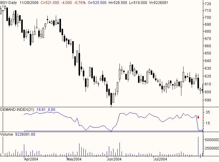 5. When the Demand Index stays near the level of zero for any length of time, it usually indicates a weak price movement that will not last long.