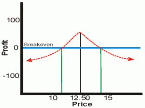 If the option trader’s near term outlook is mildly bullish, he can implement a diagonal bull spread by writing higher strike near-month calls against lower strike far-month calls.