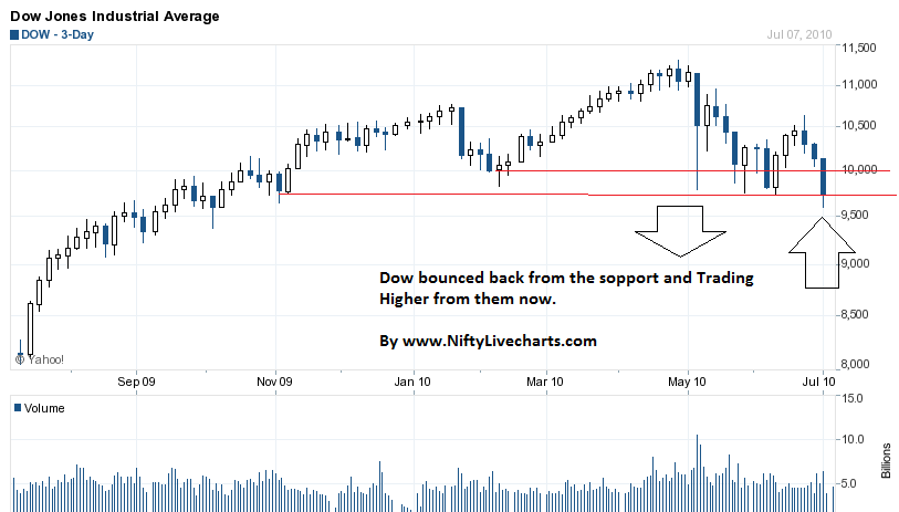 Dow Jones has made another remarkable jump from its 9800 mark. This level was quite crucial, as the next trend has to be decided by trading of US markets. Last time when Dow Jeans came to 9800 Level, the Nifty was trading at 4800 Levels too and as Dow Jeans has shown the strength, the Nifty also traded higher and gave a rally of almost 500 points, reaching the mark of 5300. This time it looks like that the markets were not in a mood of correction for the time being.