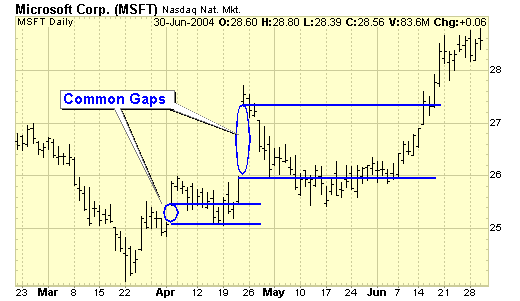 A common gap usually appears in a trading range or congestion area, and reinforces the apparent lack of interest in the stock at that time. Many times this is further exacerbated by low trading volume. Being aware of these types of gaps is good, but doubtful that they will produce a trading opportunities.