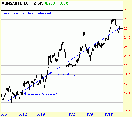 A Linear Regression trendline shows where equilibrium exists. Raff Regression Channels show the range prices can be expected to deviate from a Linear Regression trendline.
