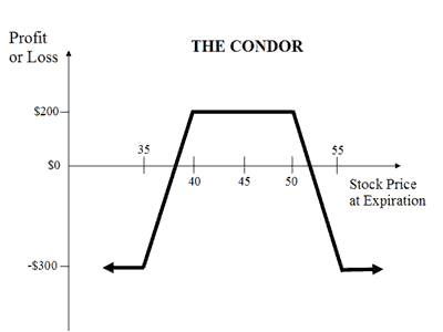 The condor option strategy is a limited risk, non-directional option trading strategy. It has been structured so as to earn a limited profit when the underlying security is perceived to have little volatility. The trader can implement a long condor option spread by writing a lower strike in-the-money call, buying an even lower striking in-the-money call, writing a higher strike out-of-the-money call and buying another even higher striking out-of-the-money call. This can be done using call options expiring on the same month. A total of 4 legs are involved in the condor options strategy and a net debit is required to establish the position.