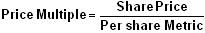 Some common price multiples are the price-to-earnings (P/E) ratio, the price-to-book (P/B) ratio, and the price-to-sales (P/S) ratio. These ratios are used in conjunction with other fundamental metrics, such as EBIDTA, in order to give analysts and investors a quick initial impression of whether a company would make a good viable investment. However, because these multiples are very simplistic, they should not be the only measure of assessing a potential investment.