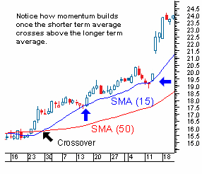 A simple, or arithmetic, moving average that is calculated by adding the closing price of the security for a number of time periods and then dividing this total by the number of time periods. Short-term averages respond quickly to changes in the price of the underlying, while long-term averages are slow to react.