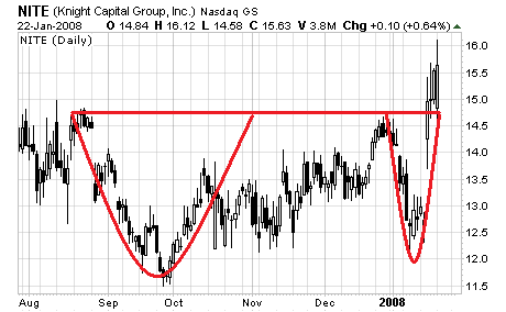 Shares of Knight Capital Group (NITE) are holding up remarkably well in this market climate. The stock started to come in action back in October. NITE has since traced a higher relative low and broke above horizontal resistance at $14.75,completing a 123 bottom. Look for the stock to hold above resistance, which should now serve as support.